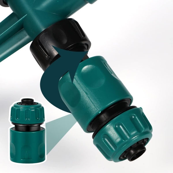 ROTOSPRITZ je vyrobený z vysokokvalitného ABS plastu s nepriepustnou konštrukciou a zaručuje stabilný výkon a dlhodobú životnosť. Trojramennú otočnú dýzu možno nastaviť na rôzne uhly postreku, čím sa vyhovie rôznym potrebám zavlažovania a zabezpečí sa všestrannosť vašej rutinnej starostlivosti o záhradu.
