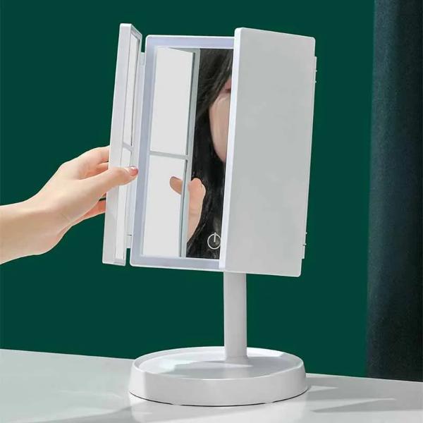 🔍 Dostrzeż każdy szczegół z wyraźnością – wbudowane panele powiększające 2x i 3x do precyzyjnego nakładania eyelinera, kształtowania brwi i rzęs.