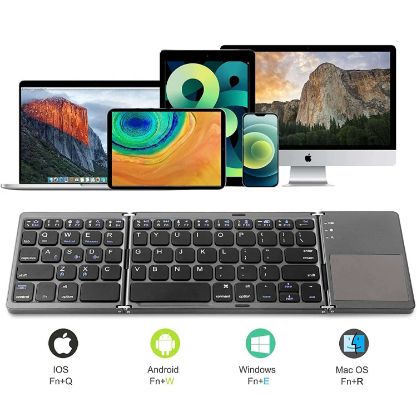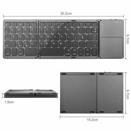 Prenosná troj-skladacia klávesnica Bluetooth kombinuje prenosný a skladací dizajn s pohodlným písaním vďaka mimoriadne veľkému touchpadu, technológii Bluetooth 5.1 a zadnej strane z umelej kože s pohodlným úchopom.