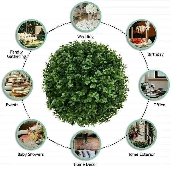 Zabudnite na ťažkosti s každodennou starostlivosťou o rastliny! Tieto umelé guľové rastliny sú navrhnuté tak, aby vyzerali úžasne v akomkoľvek prostredí, či už v interiéri alebo exteriéri. Užívajte si živú zeleň po celý rok bez obáv z vädnutia alebo vysychania. Tieto dekoratívne gule na rastliny, ktoré sú ideálne do záhrady, na terasu, do obývačky alebo do kancelárie, pozdvihnú každé prostredie bez námahy!