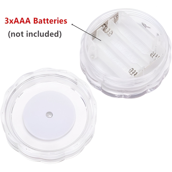 ✔️ Jednoduchým pootočením otvorte základňu a vložte dnu 3 batérie AAA.