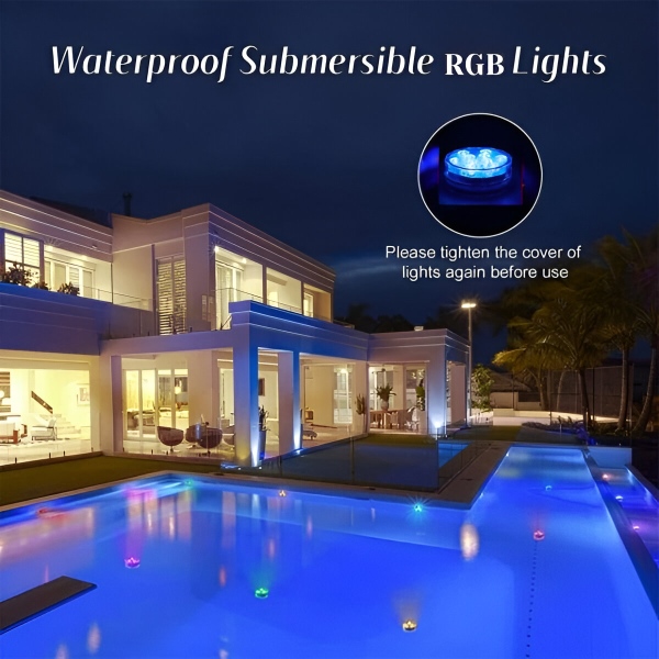 Žiadne zástrčky, žiadne iskry! Vylepšite atmosféru akvária, nádrže na vodu alebo vedierka na ľad. Tieto mini vodné svetlá so žiarivými farbami elegantne skrášlia váš bazén, akvárium, vázu alebo akýkoľvek iný dekor. Či už organizujete večierok, alebo si užívate pokojný večer, tieto všestranné RGB svetlá okamžite pozdvihnú vaše okolie.