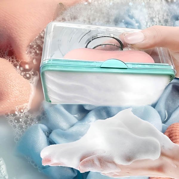 Dávkovač s penivou funkciou zaisťuje rovnomerné rozmiestnenie a jednoduché nanášanie mydla, vďaka čomu je proces ručného prania rýchlejší a efektívnejší. Tento spôsob šetrí mydlo a zabezpečuje účinné čistenie.