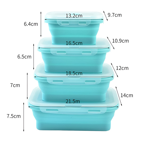 📦 Balenie obsahuje: 4x Skladacie silikónové nádoby (350 ml, 500 ml, 800 ml, 1200 ml)