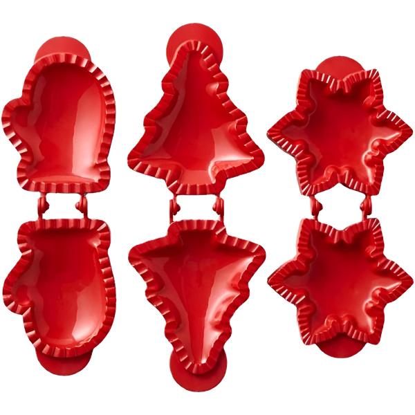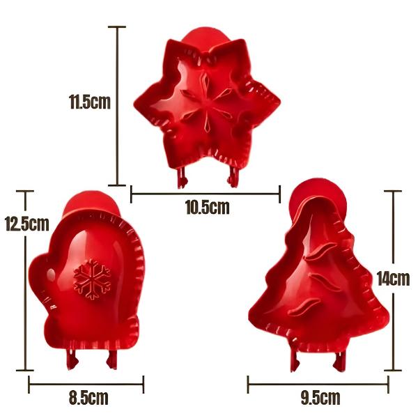 Dodajte svojim koláčom jedinečný, slávnostný nádych vďaka trom vzrušujúcim tvarom – snehová vločka, rukavica a vianočný stromček.